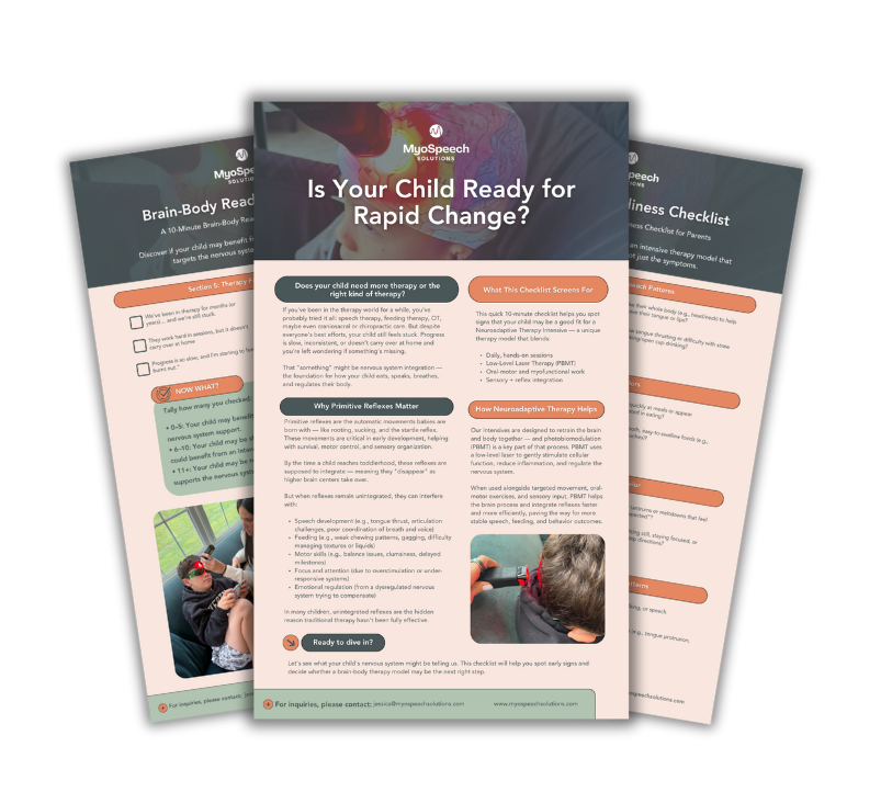 Whether it’s a toddler refuses every bite, a teen with lingering speech issues, or an adult struggling with jaw pain and restless sleep—this neuroadaptive therapy intensive is designed for those who need deeper, faster, root-cause care fast.